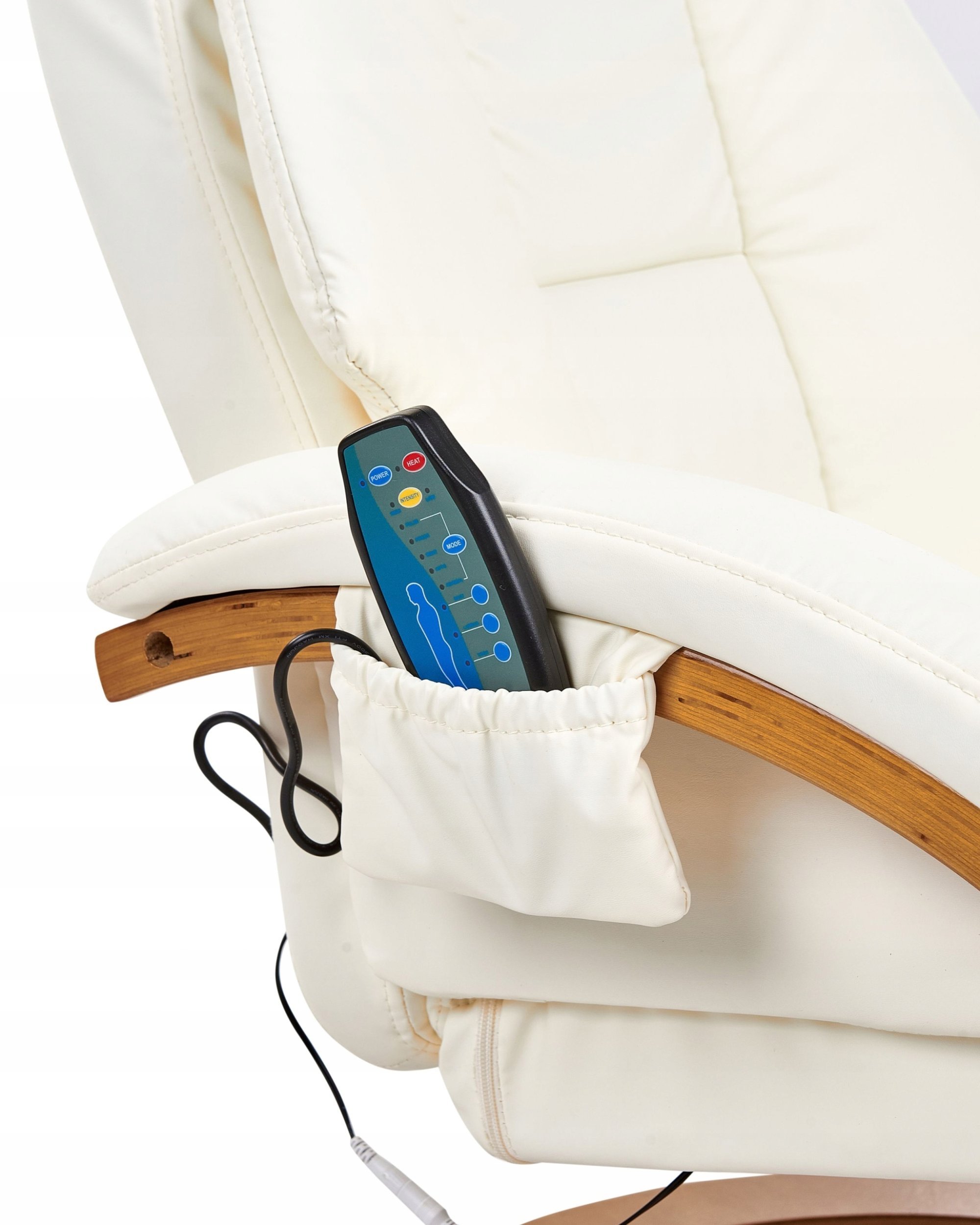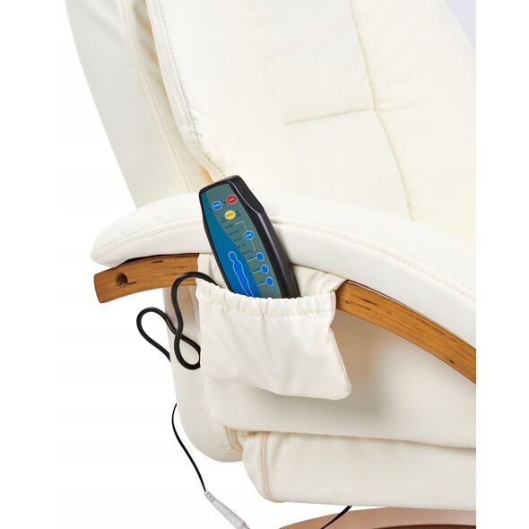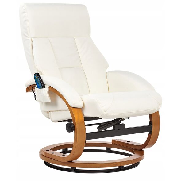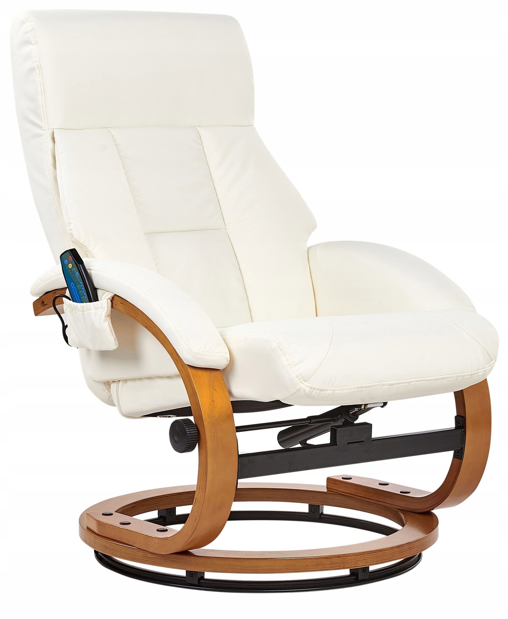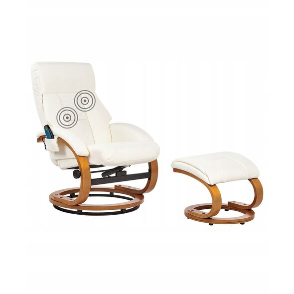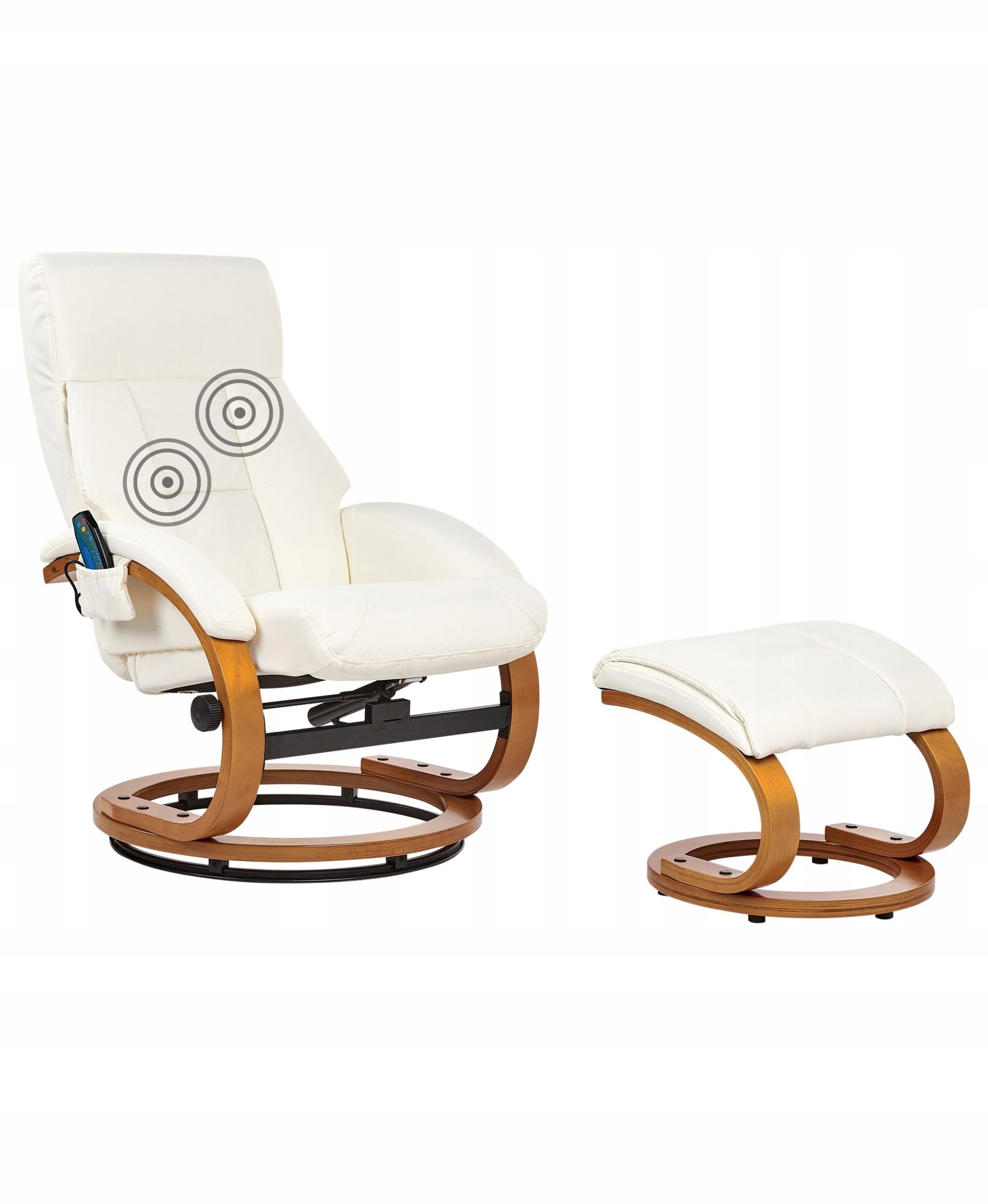 Fotel z masażem FORCE Z podnóżkiem Ekoskóra Biały