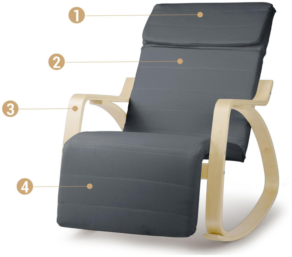 Το κούνισμα, το μαλακό προσκέφαλο, η διαμορφωμένη πλάτη και το ρυθμιζόμενο υποπόδιο θα σας κάνουν να νιώσετε χαλαροί στην καρέκλα και να χαλαρώσετε πλήρως.