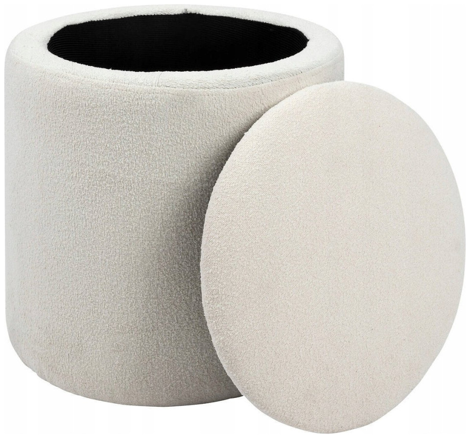 Στρογγυλό πουφ λευκό KAYDI boucle, Ø 35 cm