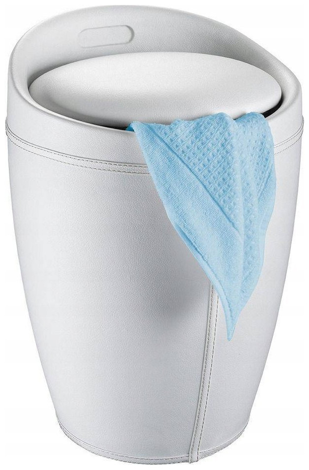 Wenko Δερμάτινος πουφ CANDY WHITE - καλάθι για άπλυτα, 2 σε 1, WENKO
