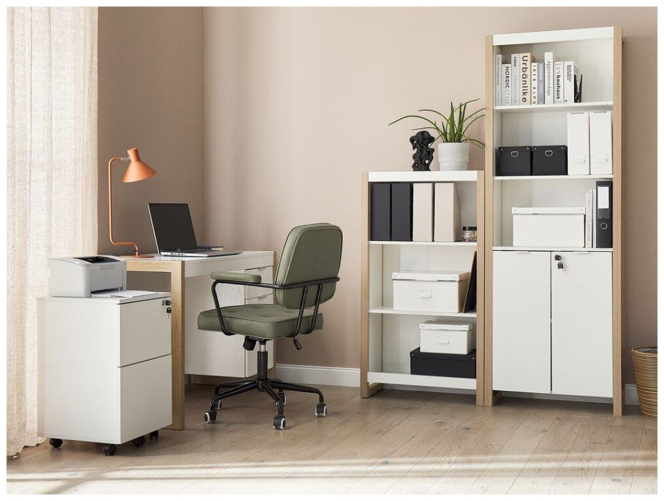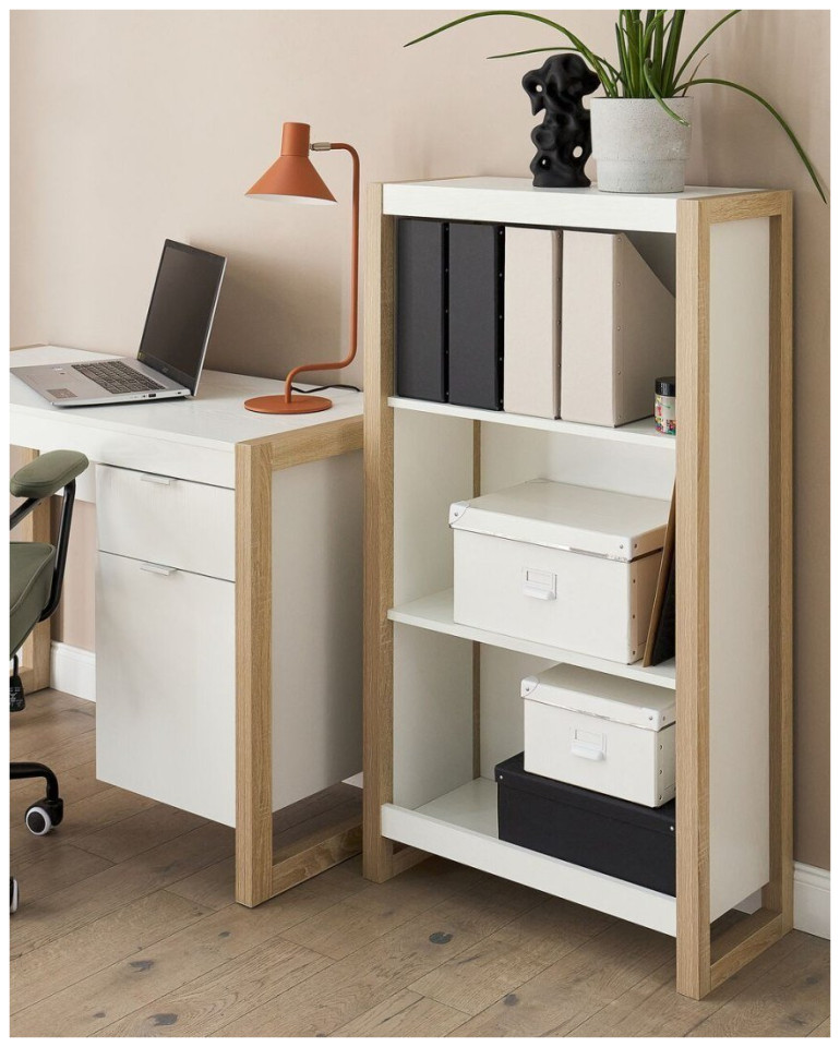 Beliani Regał 3 półki jasne drewno z białym JOHNSON