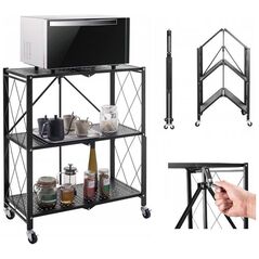 Ράφι αποθήκευσης Topeshop με ρόδες, πτυσσόμενο, FS004, 72x34x127 cm, μαύρο