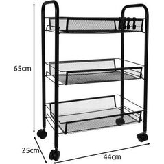Ράφι Ραφιέρα με Ρόδες 3 Επιπέδων Μεταλλική Μαύρη Vilde 44 x 26 x 63 cm