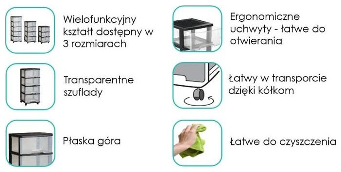 Το ράφι αποθήκευσης Curver ταιριάζει σε κάθε δωμάτιο. Ο ουδέτερος σχεδιασμός του προϊόντος και το διαφανές χρώμα των δοχείων ταιριάζουν σε κάθε εσωτερικό σχεδιασμό. Ιδανικό για αποθήκευση παπουτσιών στο χολ, παιχνιδιών στο παιδικό δωμάτιο, ρούχων ή άλλων αντικειμένων στον απαραίτητο χώρο. Τα διαφανή δοχεία σάς επιτρέπουν να βλέπετε εύκολα τα περιεχόμενα χωρίς να χρειάζεται να τα τραβήξετε έξω. Το ράφι έχει έως και 5 συρτάρια χωρητικότητας 20 λίτρων το καθένα. Οι εργονομικές λαβές διευκολύνουν το άνοιγμα και η επίπεδη επιφάνεια σάς επιτρέπει να το χρησιμοποιείτε ως ράφι. Επιπλέον, το μαύρο ράφι έχει τροχούς, ώστε να μπορείτε να το μεταφέρετε εύκολα σε άλλο μέρος. Κατασκευασμένο από πλαστικό, θα είναι εύκολο να καθαριστεί.