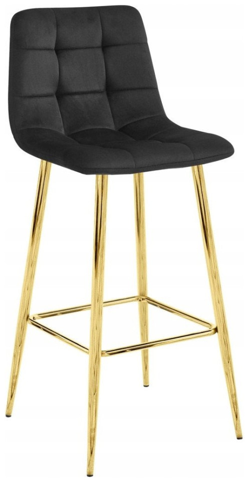 Σκαμπό ARCETO - βελούδο μαύρο / πόδια ΧΡΥΣΑ x 2