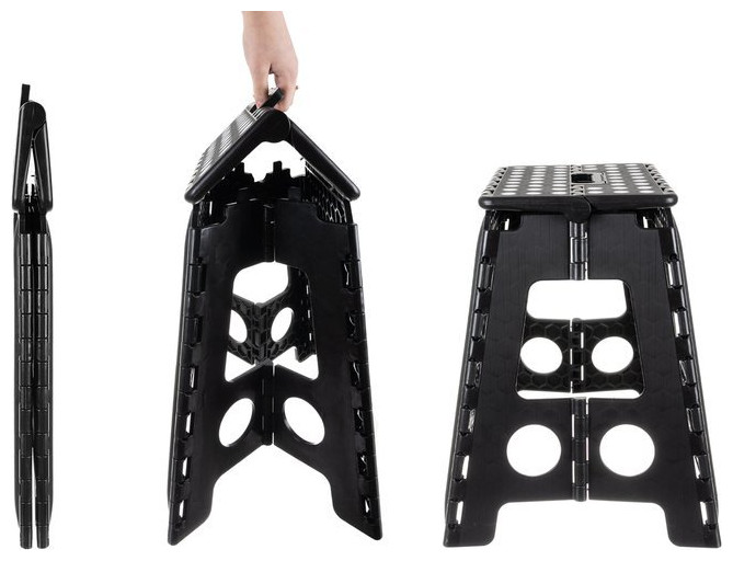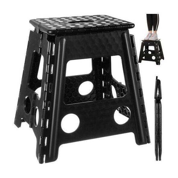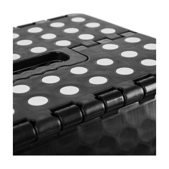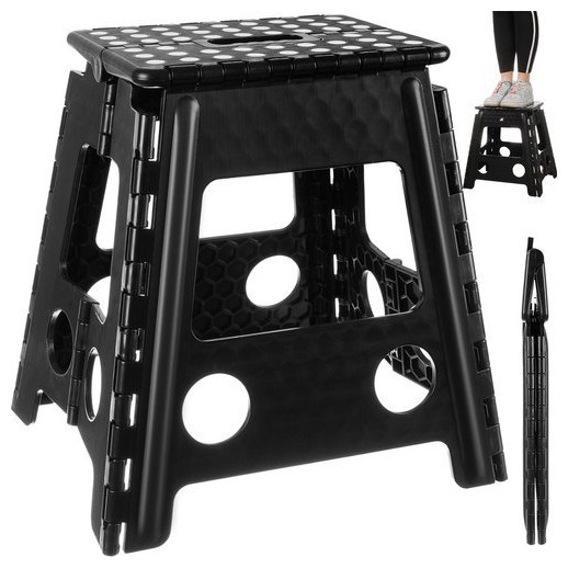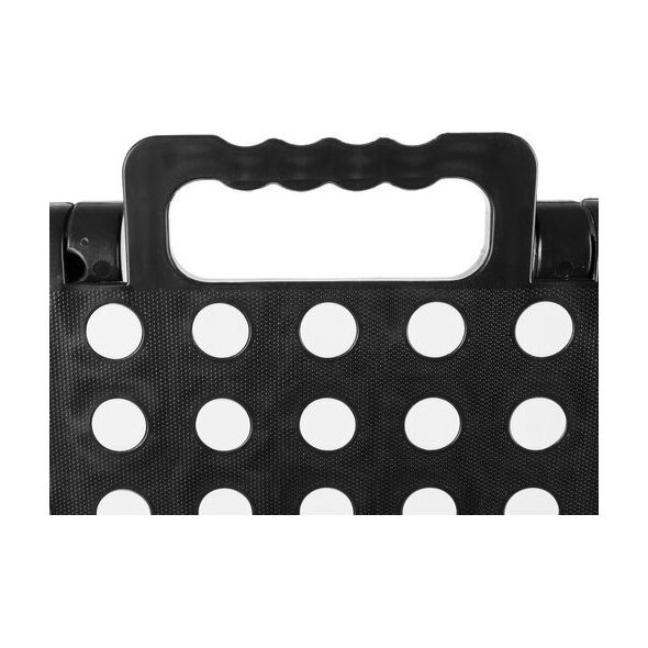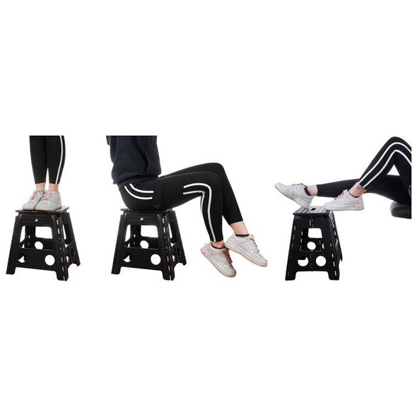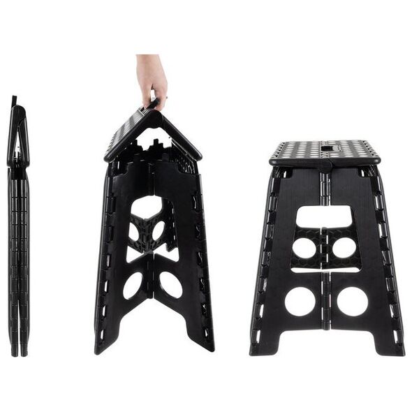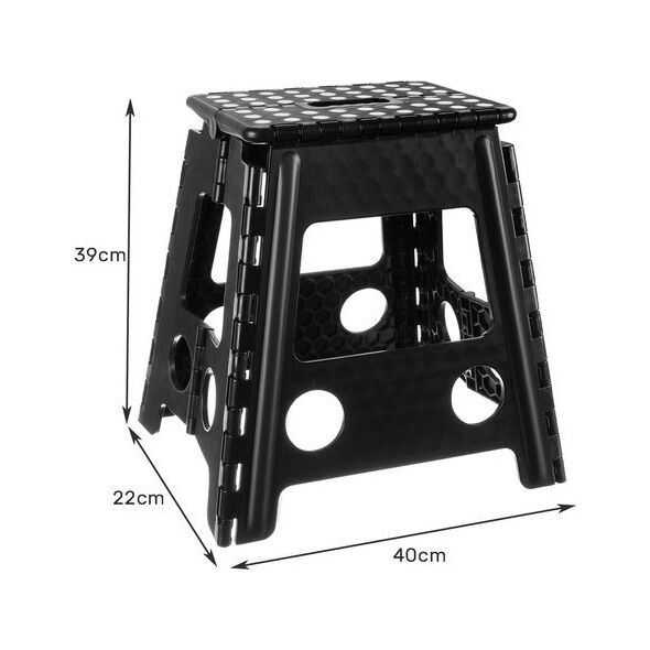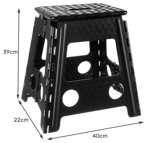 SKŁADANY STOŁEKSKŁADANY? stołek został tak zaprojektowany by po złożeniu zajmował bardzo mało miejsca,przechowywanie jego nie sprawia kłopotu. Dzięki temu niewykorzystywany zajmuje niewiele miejsca.ANTYPOŚLIZGOWE NÓŻKI- antypoślizgowa powierzchnia nóżek zapewnia doskonałą stabilność.Dzięki gumowym podkładkom w nóżkach taboret nie ślizga się po podłodze. Dodatkowo powierzchnia przeznaczona do siedzenia posiada wpusty z pianki EVA.RĄCZKA DO PRZENOSZENIA? w stołeczku jest sprytnie zamontowana rączka do przenoszenia.Po złożeniu rączka wysuwa się więc z łatwością go przetransportujesz.STABILNA KONSTRUKCJA? taboret ułatwi Ci sięganie po rzeczy na wyższych partach mebli, ściąganie ze stołkiem będzie łatwiejsze. Nadaje się zarówno dla dzieci jak i dorosłych. Został przetestowany i zatwierdzony dla obciążenia maksymalnego aż 100 kg.SPECYFIKACJA? kolor: czarny / biały; materiał: tworzywa sztuczne; wymiary złożonego (wys/ szer/gł): 53 x 40 x 3cm; wymiary rozłożonego (wys/ szer/gł): 39 x 40 x 22cm; waga: 1,568 kg; waga w opakowaniu: 1,758 kg.SPECYFIKACJAkolor: czarny / białymateriał: tworzywa sztucznewymiary złożonego (wys/ szer/gł): 53 x 40 x 3cmwymiary rozłożonego (wys/ szer/gł): 39 x 40 x 22cmwaga: 1,568 kgwaga w opakowaniu: 1,758 kgW pełni składany stołek, bardzo łatwy w transporcie oraz przechowywaniu. Produkt został wyposażony w warstwę antypoślizgową, dzięki czemu użytkowanie jest bezpieczniejsze. Podest wykorzystasz, żeby dosięgnąć do wysokiej półki, pomalować sufit podczas remontu, zawiesić żyrandol czy powiesić firanki. Produkt także świetnie sprawdzi się jako podest dla dzieci - np. aby dosięgnąć do umywalki.WSZECHSTRONNE ZASTOSOWANIEw domudla dziecina rybyna kempingna biwakdo warsztatuw pracowniach krawieckichw pracypod prysznicna pielgrzymkędo ogroduna imprezy plenerowe