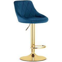 Ταπετσαρισμένο σκαμπό κουζίνας μπλε με χρυσή βάση 2 τεμ για μπαρ νησίδας