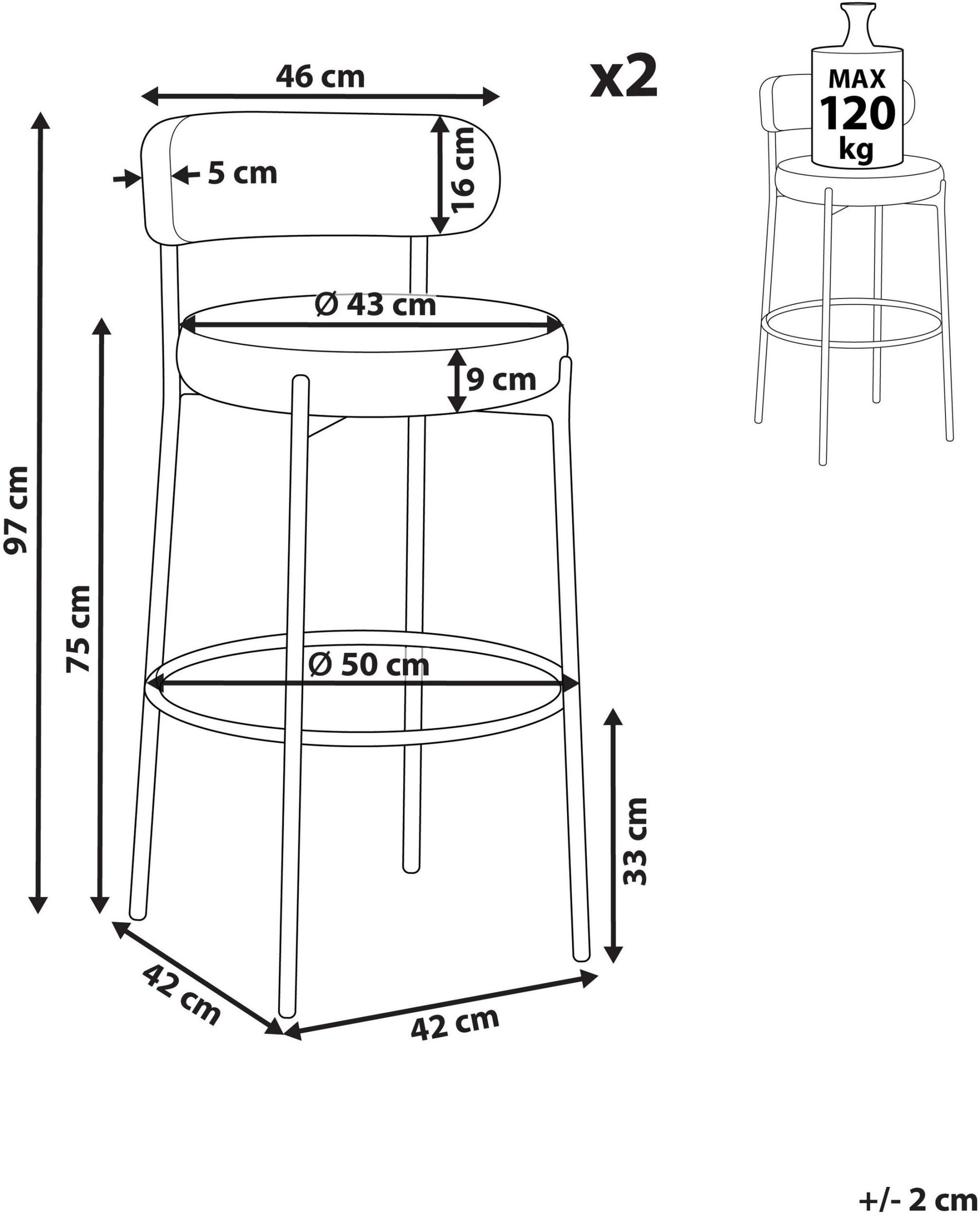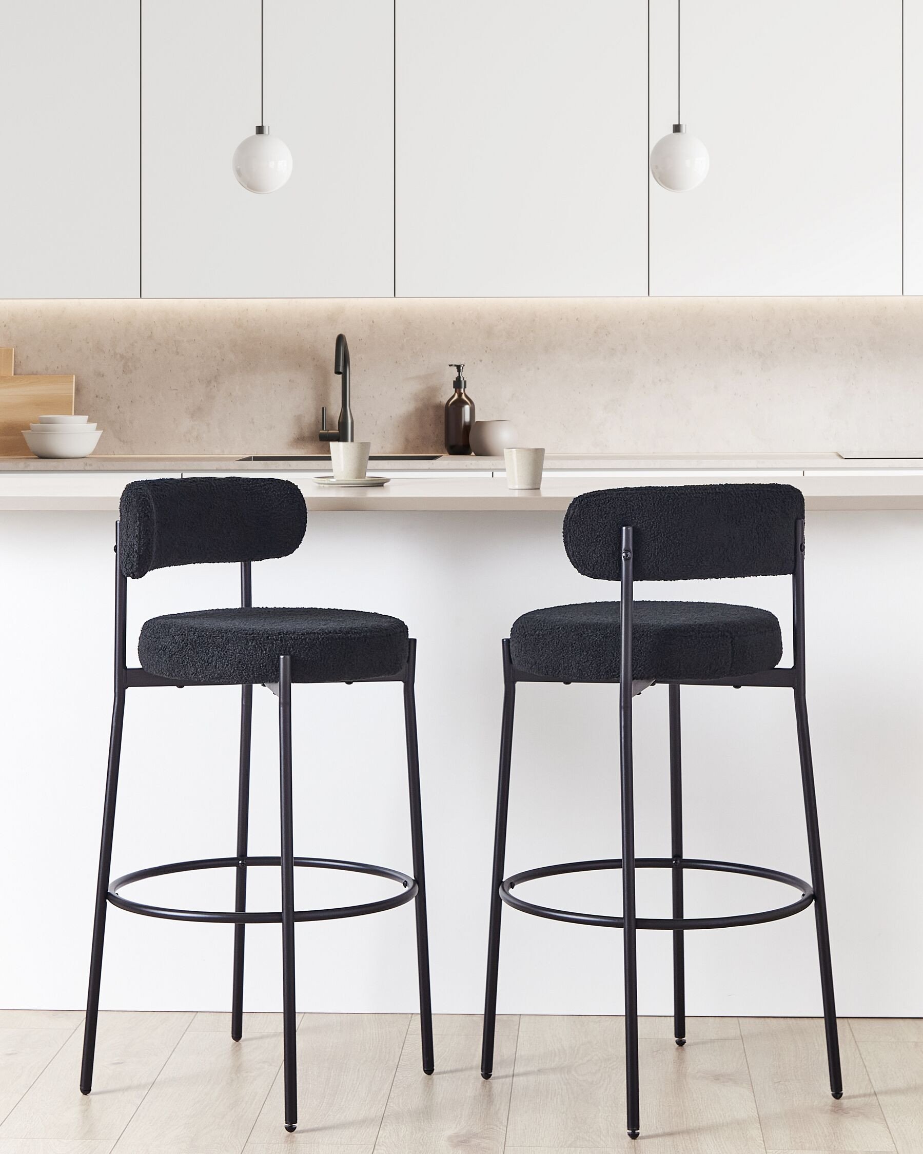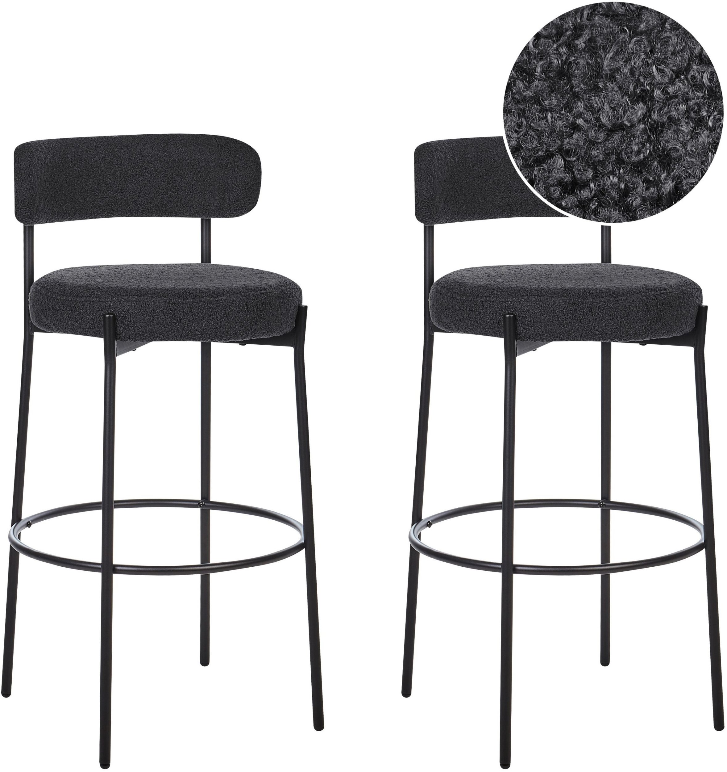 Zestaw 2 krzeseł barowych ALLISON Boucle Czarny