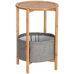 Βοηθητικό τραπέζι Wenko BAHARI, από μπαμπού, με υφασμάτινο καλάθι αποθήκευσης, στρογγυλό, Wenko