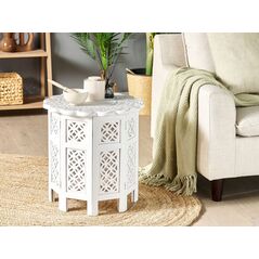 Βοηθητικό τραπέζι Beliani ξύλο μάνγκο σπασμένο λευκό BADHI Lumarko!