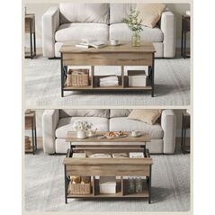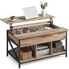 VASAGLE Τραπέζι καφέ, τραπέζι σαλονιού προσαρμοσμένο στο ύψος, τραπεζάκι καφέ, ανοιχτός και κρυφός χώρος αποθήκευσης, X-STRUTS,