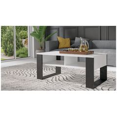 Τραπέζι καφέ Topeshop με 2 ράφια, μοντέρνο 2P, λευκό μαύρο