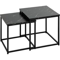 Τραπεζάκι σαλονιού τετράγωνο 2τμχ - μάρμαρο / μαύρα πόδια