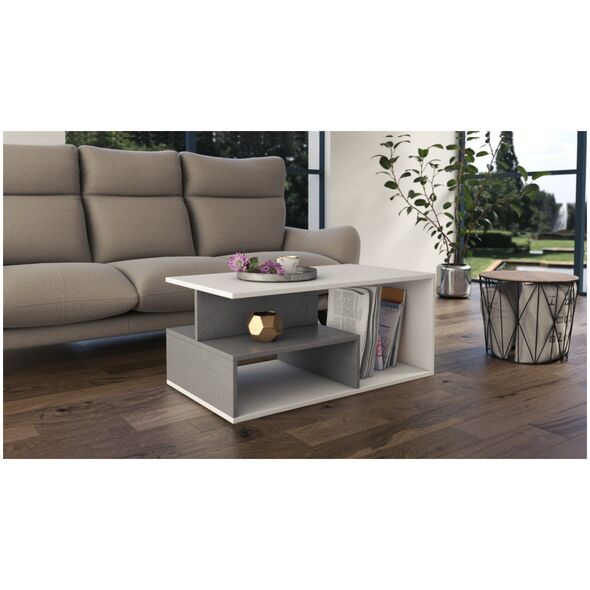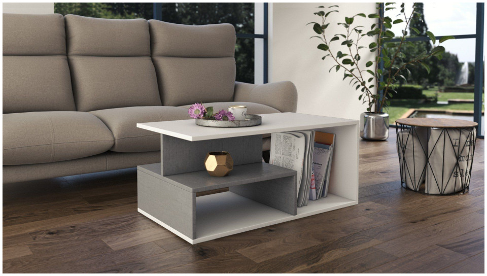 Πάγκος καφέ από μασίφ πλαστικοποιημένη σανίδα με επιπλέον ράφι για καθημερινά είδη. Ιδανικό για μοντέρνα σαλόνια, μικρότερα δωμάτια ή κομψά γραφεία.