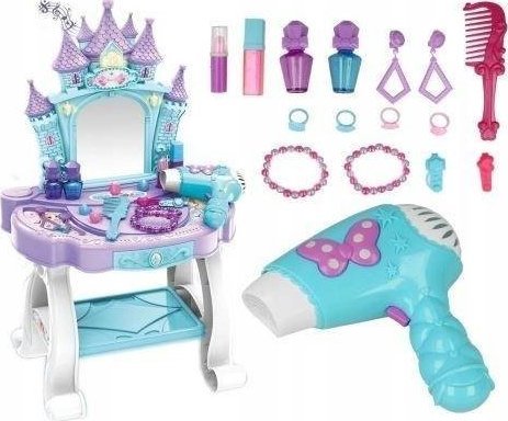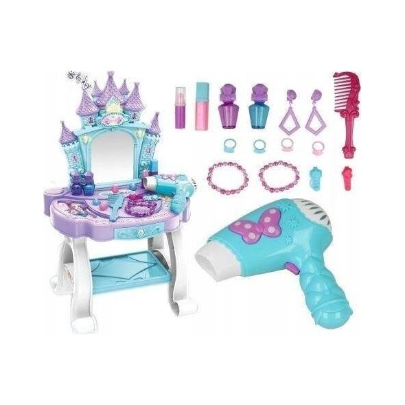 Ένα τέλειο σετ για ένα κοριτσάκι με λουλούδια! Στο σετ, κάθε κορίτσι θα βρει όλα τα απαραίτητα αξεσουάρ. Μπουντουάρ Το σετ περιλαμβάνει: Καθρέφτη με εφέ ήχου και φωτός, κοσμήματα, χτένα, απομίμηση καλλυντικών (άρωμα, κραγιόν), πιστολάκι μαλλιών με μπαταρία, σκουλαρίκια, βραχιόλια, δαχτυλίδια, τέσσερα σταθερά πόδια, ράφι για gadgets. Όμορφα ΧΡΩΜΑΤΑ Μπουντουάρ Ιδανικό για παιχνίδι σε σαλόνι ομορφιάς. Το μπουντουάρ είναι τέλειο για κάθε μικρή ηθοποιό ή μοντέλο. Το σετ είναι πολύ πλούσιο Το σετ ομορφιάς με μπουντουάρ είναι κατάλληλο για κορίτσια από τριών ετών. Σε αυτή την ηλικία, τα κορίτσια αρχίζουν να ενδιαφέρονται για οτιδήποτε σχετίζεται με την εμφάνιση. Ένα παιδί βλέπει τη μητέρα του να μακιγιάζ και να χτενίζεται και θέλει να κάνει το ίδιο για να νιώσει σαν ενήλικη γυναίκα. Είναι κατασκευασμένο από πλαστικό και φαίνεται πολύ κομψό. Το μπουντουάρ είναι ένα τέλειο δώρο για μια μικρή κυρία.