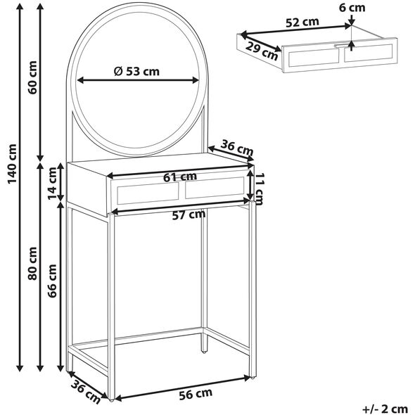 Toaletka z lustrem CASSIAR Jasnobrązowy