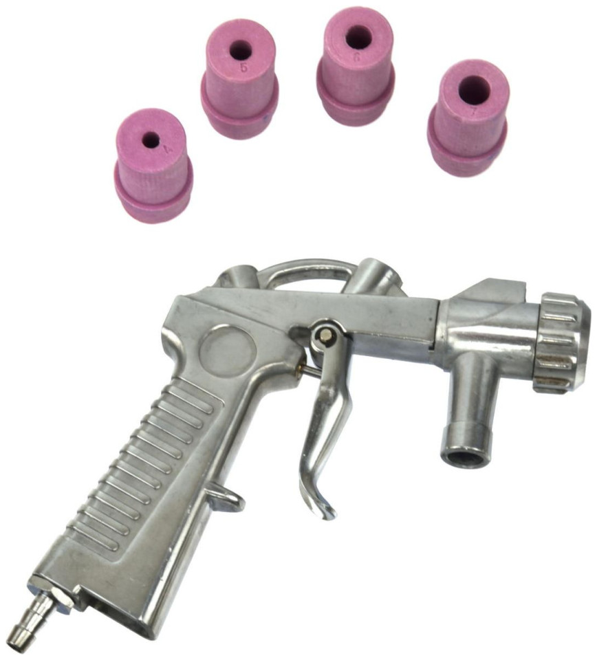 Πιστόλι αμμοβολής + 4 ακροφύσια Πιστόλι αμμοβολής με 4 κεραμικά ακροφύσια.