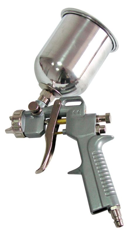 Πιστόλι βαφής 1/4" με άνω δεξαμενή - 66245 Με άνω δεξαμενή χωρητικότητας 0,5 λίτρων. Πίεση λειτουργίας 3 - 4 Bar (0,3 - 0,4 MPa) Ρύθμιση ροής βαφής. Κατανάλωση αέρα 100 - 200 l/min. Γρήγορη υποδοχή 1/4". Ακροφύσιο: 1,5mm