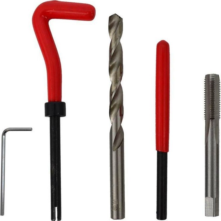 Σχεδιασμένο για σπειρώματα M5x0,8 Χλστ. Για να εισαγάγετε το ένθετο, υπάρχει ένα πόμολο-οδηγός και μια διάτρηση που σπάει το προεξέχον άκρο του ένθετου Όλα σε μια θήκη: 1 x πόμολο 1 x τρυπάνι 1 x πόμολο 30 x Επισκευάστε τα ένθετα. ελατήρια) Βάρος: 0,194 kg