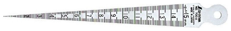 Sprawdziany do otworów (14411003) Dane techniczne: Zakres pomiarowy 1-15Podziałka 0.1Długość podziałki 120Grubość 1.2
