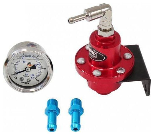 Uniwersalny regulator ciśnienia paliwa Firmy D1SPEC. W zestawie otrzymasz: regulator zegar zalewany cieczą co gwarantuje najwyższą dokładność potrzebne złączki Wyprodukowano w Japonii.