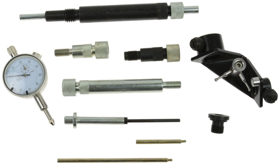 Συσκευή ρύθμισης αντλιών έγχυσης BOSCH / LUKAS / CAV Συσκευή σχεδιασμένη για ακριβή ρύθμιση ή έλεγχο της έναρξης της έγχυσης σε περιστροφικές αντλίες έγχυσης BOSCH, LUKAS, CAV. Υποστηριζόμενες αντλίες έγχυσης που χρησιμοποιούνται σε αυτοκίνητα των ακόλουθων εμπορικών σημάτων: Fiat Lancia Alfa Romeo VW-Audi BMW Ford Renault Rover Iveco Mitsubishi Isuzu και άλλα > Περιεχόμενα σετ: βάση μετρητή καντράν 0-8 mm για τον προσδιορισμό της βάσης αισθητήρα θέσης εμβόλου για αντλίες LUKAS CAV M8 x Υποδοχή αισθητήρα μείωσης M12 M10 κοντή θήκη αισθητήρα M8 κοντή θήκη αισθητήρα M8 μεγάλη προέκταση για θήκη όχι 3 προέκταση μύτης μέτρησης μικρή προέκταση μύτης μέτρησης μακριά{Type} Για να λειτουργήσετε τον κινητήρα. {Type} Για να λειτουργήσετε τον κινητήρα. {Type} Για να λειτουργήσετε τον κινητήρα. {Type} Για να λειτουργήσετε τον κινητήρα. {Type} Για να λειτουργήσετε τον κινητήρα