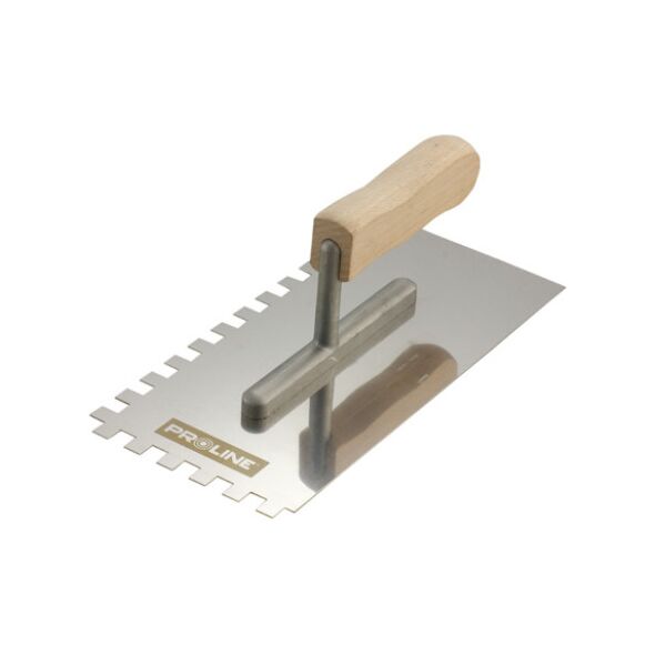 Χάρη στα εργαλεία πλακιδίων, όπως μια οδοντωτή σπάτουλα, η τοποθέτηση πλακιδίων δαπέδου σε ανώμαλες επιφάνειες είναι απλή και γρήγορη και η στρώση της κόλλας πλακιδίων που εφαρμόζεται είναι κατάλληλη.{Τύπος} Σοβάτισμα μυστρί