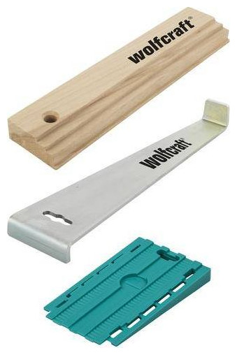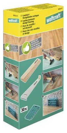 Ένα πλήρες σετ 3 έξυπνων εργαλείων για την τοποθέτηση λαμιναρισμένων πάνελ με διατήρηση των αρμών διαστολής Το σετ περιλαμβάνει: - κουτάλι σύσφιξης - ξύλινο μπλοκ κρούσης - 30 σφήνες διαστολής