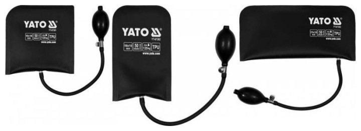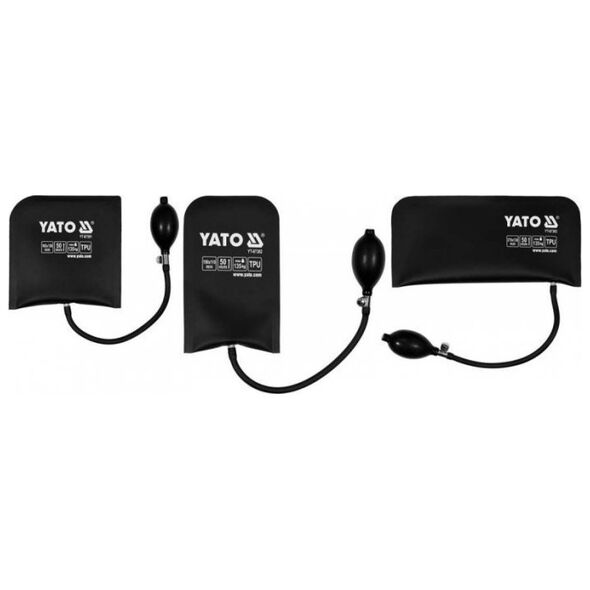 Περιγραφή προϊόντος Πνευματικά μαξιλάρια στήριξης. Υλικό μαξιλαριού - ενισχυμένο πολυπροπυλένιο σε μαύρο χρώμα. Διαθέτουν ανθεκτικές βαλβίδες ελέγχου κατασκευασμένες εξ ολοκλήρου από μέταλλο Προβλεπόμενη χρήση: Για τοποθέτηση βαρέων στοιχείων βάρους έως 135 kg. Σας επιτρέπει να μετακινείτε / σηκώνετε, να μετακινείτε εύκολα / π.χ. έπιπλα, πλυντήρια ρούχων, εξαρτήματα και συσκευές κατά τη διάρκεια διαφόρων τεχνικών εργασιών: Τοποθετήστε ένα άδειο μαξιλάρι / περίπου 2 mm στη θέση που επιθυμείτε, κλείστε τη βαλβίδα ελέγχου και χρησιμοποιήστε την αντλία για να την τοποθετήσετε στο άκρο του εύκαμπτου σωλήνα, πιέστε αέρα μέσα στο μαξιλάρι, προκαλώντας το πρήξιμο και μετακίνηση του αντικειμένου. Για να αφαιρέσετε το μαξιλάρι, γυρίστε τη βαλβίδα και απελευθερώστε σταδιακά τον αέρα Το σετ αποτελείται από τρία μαξιλάρια με διαστάσεις: - 165 x 150 mm - 190 x 110 mm - 270 x 130 mm - ικανότητα φόρτωσης: 135 kg - μέγιστο ύψος ανύψωσης: 50. mm - μήκος σωλήνα: 250 mm{Type} Άλλο