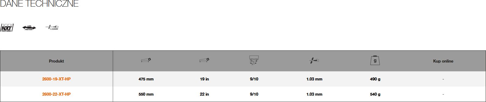 Dane produktów Piła ręczna zaprojektowana zgodnie z naukową koncepcją i procesem narzędzi ERGO™ Ergonomiczna i dobrze zbalansowana, komfortowa, zaprojektowana w taki sposób, aby idealnie pasowała do dłoni i się dobrze w niej układała podczas pracy Piła do cięcia średnich elementów drewnopochodnych z ulepszonym zakresem cięcia od drobnego do grubszego Unikalne uzębienie typu NXT pozwala na cięcie gładkie i proste przy zachowaniu tej samej szybkości i stabilności cięcia Grubszy brzeszczot zapewnia dużą precyzję i stabilność cięcia Czarna powłoka zmniejszająca tarcie i zabezpieczająca przed korozją Skręcana śrubami rękojeść wykonana z trzech rodzajów tworzyw, może być używana do przecinania pod kątem 45° i 90°
