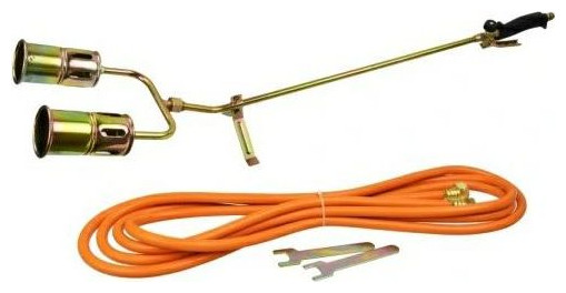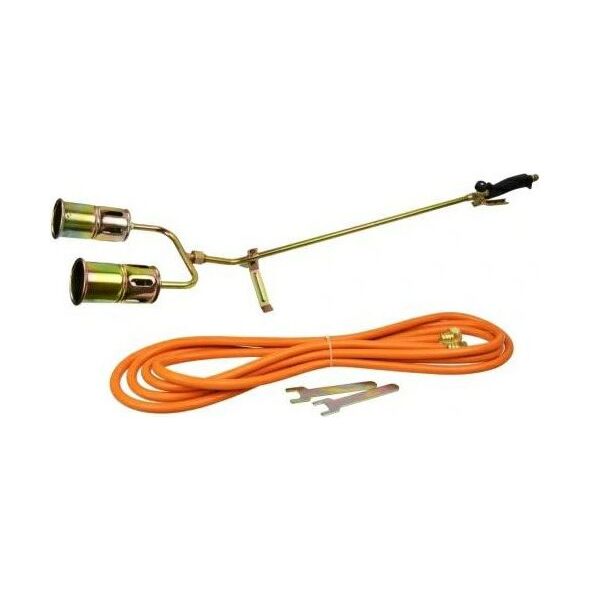 Profesjonalny palnik dekarski gazowy do podgrzewania i wypalania. Idealny do grzania, opalania i obkurczania materiałów oraz do klejenia na ciepło. Dodatkowo nadaje się również do topienia lodu, śniegu, spalania chwastów, rozmrażania rur. Charakterystyka produktu dwie równoległe dysze o średnicy 60 mm długość palnika wraz z dyszami: 100 cm temperatura płomienia do 1850°C antypoślizgowa rękojeść z dzwignią i z pokrętłem regulacji przepływu gazu stalowa dysza i zawór przepływowy Dane techniczne: Maksymalna moc 58 kW Temperatura płomienia: do 1850°C Zużycie gazu: 4000 g/h Długość palnika: 85 cm Dysze w zestawie: 60 mm Długość węża: 5 m Przyłącze palnika: GZ 3/8" Przyłącze węża: GW 3/8" oraz GW 1/2" Materiał wykonania: stal ocynkowana, tworzywo sztuczne Zawartość zestawu palnik z regulacją 2 dysze o średnicy 60 mm okuty wąż o długości 5 m 2 klucze do regulacji stopka do położenia palnika