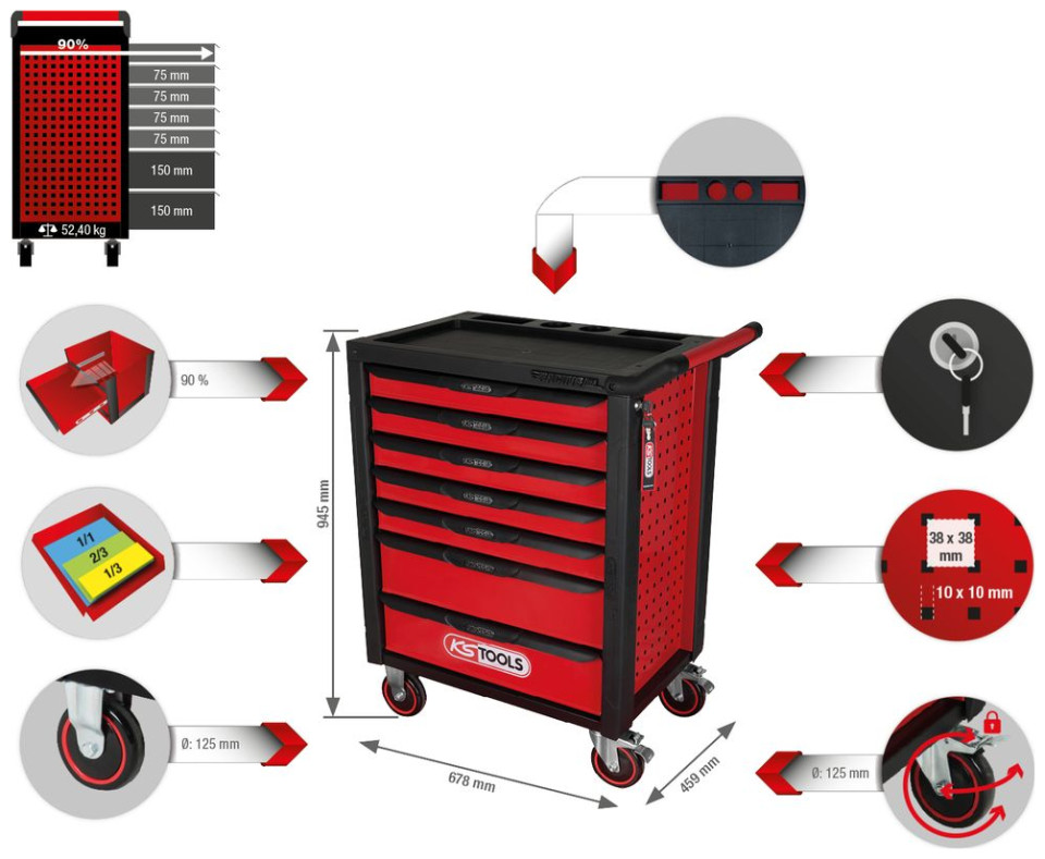 Καρότσι εργαστηρίου RACINGline μαύρο/κόκκινο με 7 συρτάρια