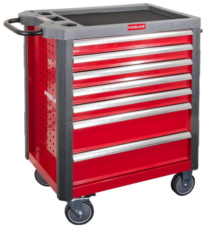 {Type} χωρίς εξοπλισμό . {Αριθμός συρταριών} 7 συρτάρια. {Αριθμός εργαλείων στο τρόλεϊ} Δεν υπάρχουν εργαλεία. {Σύστημα κλειδώματος συρταριών} Κεντρικό κλείδωμα για όλα τα συρτάρια. {Εργασία με αντιολισθητικό υλικό} Ναι. {Συρτάρια με αντιολισθητικό υλικό} Αρ. {Προστασία από αυτόματο άνοιγμα} Ναι. {Τροχοί με κλείδωμα} Ναι. {Weight} Δεν υπάρχουν διαθέσιμα δεδομένα. {Αριθμός ραφιών} Κανένα . {Υλικό} Χάλυβας. {Μέγ. φορτίο ολόκληρου του τρόλεϊ} Δεν υπάρχουν δεδομένα. {Πλάτος} 70,6 cm . {Ύψος} 95 cm. {Βάθος} 45 cm
