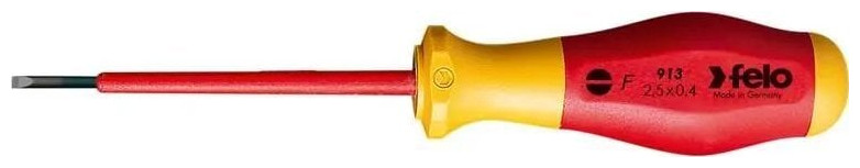 - Κατσαβίδια σειράς FELO 900 - Για εργασίες υπό τάση 1000 V - Σύμφωνα με το πρότυπο EN60900 - Λαβή δύο συστατικών Η Felo είναι μια γερμανική οικογενειακή εταιρεία της οποίας οι παραδόσεις χρονολογούνται από το 1887. Στα 120 χρόνια της δραστηριότητάς της, έχει γίνει διάσημη για πολλά καινοτόμα έργα και τεχνικά διπλώματα ευρεσιτεχνίας, όπως: μια λαβή δύο συστατικών, μια μοντέρνα μύτη ζαφείρι-διαμάντι ή το σύστημα Smart. Επί του παρόντος, είναι ο κορυφαίος κατασκευαστής κατσαβιδιών και κατσαβιδιών Felo στον κόσμο που χαρακτηρίζονται από εξαιρετικά υψηλή ακρίβεια άκρων και ανθεκτικότητα. Είναι σε θέση να μεταδίδουν τις υψηλότερες ροπές και έτσι να πληρούν τις υψηλές απαιτήσεις όλων των γνωστών τεχνικών προτύπων. Οι λαβές τους είναι διαμορφωμένες με εξαιρετικά εργονομικό τρόπο - επιτρέπουν σταθερό κράτημα και ελάχιστη προσπάθεια εργασίας.{Σχήμα συμβουλής} Επίπεδο. {Type} Απομονωμένος