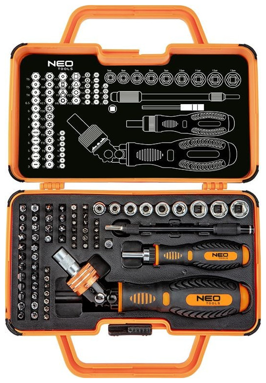 Ένα σετ από υψηλής ποιότητας κλειδιά, πρίζες και άλλα εργαλεία απαραίτητα σε κάθε συνεργείο. Τα εργαλεία NEO κατασκευάζονται με βάση τις τελευταίες τεχνολογίες και σύγχρονα υλικά. Το σετ NEO συνοδεύεται από 25 χρόνια εγγύηση.