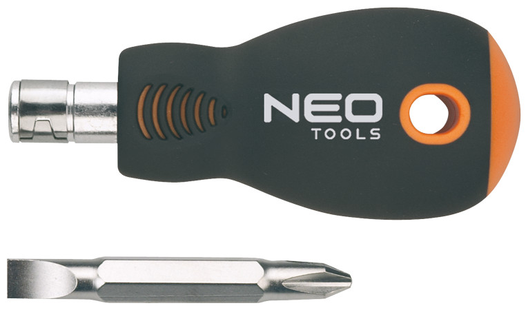 Το αναστρέψιμο κατσαβίδι NEO περιλαμβάνει μια λαβή και μια άκρη κατσαβιδιού διπλής όψης (επίπεδη, σταυρή)