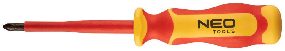 Κατσαβίδι Phillips PH 1000V NEO (αρ. πρωτ. 04-167) με διαστάσεις PH2 x 100 mm. Πιστοποιημένο για λειτουργία υπό τάση έως 1000 V. Η άκρη του κατσαβιδιού είναι κατασκευασμένη από ανθεκτικό χάλυβα χρωμίου-βαναδίου. Το κατσαβίδι έχει μαγνητικό άκρο. Το εργονομικό σχήμα της λαβής με ειδικό γιακά μειώνει την καταπόνηση του χεριού κατά την εργασία. Η λαβή δύο υλικών αποτρέπει την ολίσθηση στο χέρι και είναι ανθεκτική σε χημικά, λάδια και γράσα. Η αξιοπιστία του προϊόντος επιβεβαιώνεται από 25 χρόνια εγγύηση. Η μάρκα NEO ανταποκρίνεται στις προσδοκίες των επαγγελματιών.