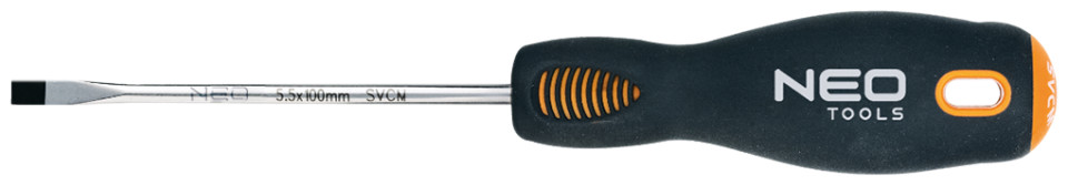 Επίπεδο κατσαβίδι NEO. Η άκρη του κατσαβιδιού είναι κατασκευασμένη από εξαιρετικά ανθεκτικό χάλυβα χρωμίου-μολυβδαινίου.