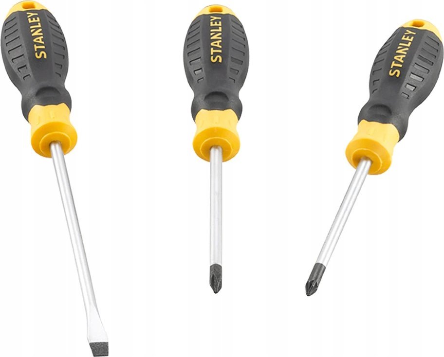 STANLEY 3 ΕΛ. ΣΕΤ ΚΑΤΣΑΒΙΔΙΩΝ STHT16168-0 ΕΞΑΙΡΕΤΙΚΗ ΑΝΕΣΗ: Η άνετη λαβή CUSHION GRIP™ εξασφαλίζει άνεση κατά την εκτέλεση επαναλαμβανόμενων εργασιών. Το ειδικό σχήμα της λαβής βελτιώνει το κράτημα, τον έλεγχο και τη μεταφορά ροπής. ΑΝΘΕΚΤΙΚΟ ΜΑΓΝΗΤΙΚΟ ΣΥΣΤΗΜΑ: Παρέχει εξαιρετική επαφή με τη βίδα, αντοχή και ανθεκτικότητα. ΥΨΗΛΗ ΙΣΧΥΣ: Το ατσάλινο τμήμα του εργαλείου επιτρέπει υψηλή ροπή και μειώνει τον κίνδυνο θραύσης του άκρου. ΑΝΘΕΚΤΙΚΟΤΗΤΑ ΚΑΙ ΠΡΑΚΤΙΚΟΤΗΤΑ: Η λαβή που συνδέεται απευθείας με το εργαλείο εξασφαλίζει αξιοπιστία, αντοχή και ανθεκτικότητα. ΕΥΚΟΛΗ ΑΝΑΓΝΩΡΙΣΗ ΣΥΜΒΟΥΛΩΝ: Τα καθαρά σύμβολα στο άκρο της λαβής σάς επιτρέπουν να ταιριάξετε γρήγορα το εργαλείο με την εργασία. ΜΕΓΑΛΗ ΛΑΒΗ: Παρέχει υψηλή ροπή για βίδωμα σε ξύλο. ΕΠΙΚΑΛΥΨΗ ΧΡΩΜΙΟΥ: Προστατεύει το εργαλείο από τη διάβρωση. ΧΡΗΣΙΜΗ ΤΡΥΠΑ: Διευκολύνει την αποθήκευση του εργαλείου και αυξάνει την ασφάλεια κατά την εργασία σε ύψη. ΠΟΛΛΑΠΛΕΣ ΕΦΑΡΜΟΓΕΣ: Τέλειο εργαλείο για πολλές επαγγελματικές εφαρμογές. Το σετ περιλαμβάνει: PH2 x 100mm Medium, PZ2 x 100mm Medium, Flared 6,5mm x 150mm Medium