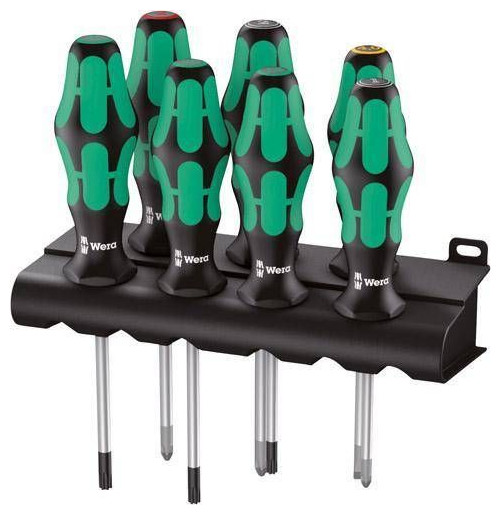 Σετ κατσαβιδιών με στρογγυλό στέλεχος, 8 τεμάχια Σχεδίαση: Από ειδικό ατσάλι υψηλής κραματοποίησης. Μύτη λέιζερ με μικροσκοπικά τραχιά επιφάνεια. Η μειωμένη πίεση εμποδίζει τη βίδα να γλιστρήσει από την κεφαλή. Με εργονομική λαβή Kraftform® Plus 3 συστατικών, με ενσωματωμένες μαλακές ζώνες για καλύτερο κράτημα, εξαγωνική προστασία κατά της κύλισης. Επιπλέον, τα κατσαβίδια φέρουν ανάγλυφο το σύμβολο του μηχανισμού κίνησης και το μέγεθος του σετ: 1 κατσαβίδι επίπεδης κεφαλής 4 mm, 1 κατσαβίδι Phillips PH 2, 2 κατσαβίδια Phillips PZ 1. 2 3 κατσαβίδια για βίδες κεφαλής υποδοχής TORX® T 15. 20; 25 1 κρεμάστρα τοίχουΣετ {Tip Shape} . Σετ {Tip Shape} . Σετ {Tip Shape} . Σετ {Tip Shape} . Σετ {Tip Shape} . Σετ {Tip Shape} . {Type} Standard . {Type} Standard . {Type} Standard . {Type} Standard . {Type} Standard . {Type} Standard