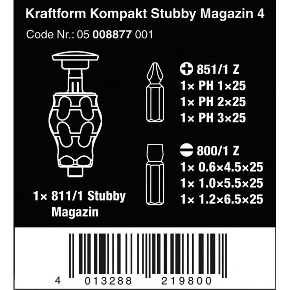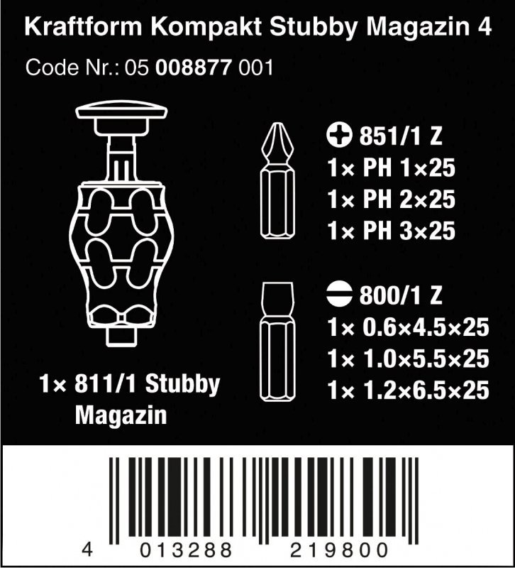 Wera Wera Kraftform compact stubby magazine 4 bit set (black/green, 7 pieces)