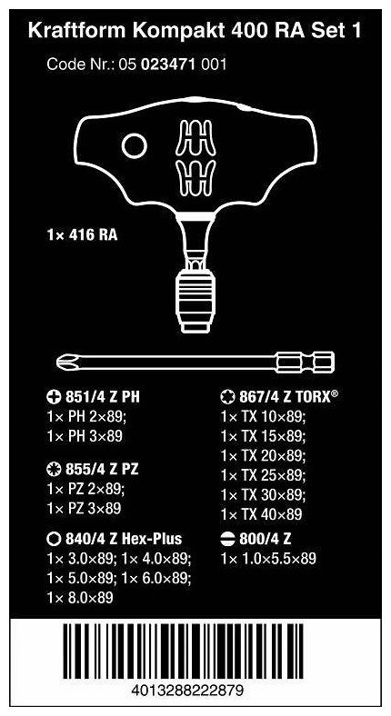 Σετ Wera Kraftform Kompakt 400 RA, Set 1, 17 τεμ.