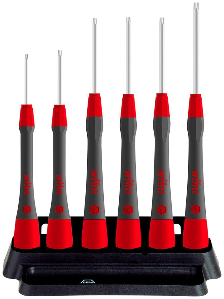 Zestaw 42997 firmy Wiha zawiera sześć precyzyjnych wkrętaków TORX PicoFinish w różnych rozmiarach oraz praktyczny plastikowy uchwyt do zawieszenia lub postawienia. Dzięki długim, smukłym uchwytom i strefie szybkiego obrotu wkrętaki precyzyjne PicoFinish lub wkrętaki elektroniczne idealnie nadają się do precyzyjnych i delikatnych prac w mechanice precyzyjnej, a także w hobby i modelarstwie. Ergonomiczna konstrukcja rękojeści z miękką strefą umożliwia wygodną pracę, a płynnie działająca obrotowa nasadka umożliwia szybkie i czułe obracanie. Wyzwaniem w przypadku precyzyjnych mechanicznych połączeń śrubowych jest bardzo precyzyjna i delikatna praca bez uszkodzenia wrażliwego przedmiotu obrabianego. Symbole wkrętaków wydrukowane na obrotowej nasadce ułatwiają wybór odpowiedniego profilu wkrętaka w torbie narzędziowej.Nr art.: 1608907Typ śrubokrętKolor szary/czerwonyKod EAN:4010995429973Kod producenta: 42997Seria PicoFinishPrzeznaczenie Do delikatnych prac związanych z wkręcaniem w mechanice precyzyjnej i modelarstwieLiczba części 6 częściNarzędzia w zestawie śrubokrętProfile zawierały wewnętrzne TORX TWkrętak do elektroniki 6 sztuk (uchwyt okrągły) TORX T 4 / T 5 / T 6 / T 7 / T 8 / T 9Regał kontenerowy do montażu na ścianieObszary zastosowania: dom, warsztatFunkcja Drukowane symbole profili na obrotowej pokrywieWaga 356 gramów