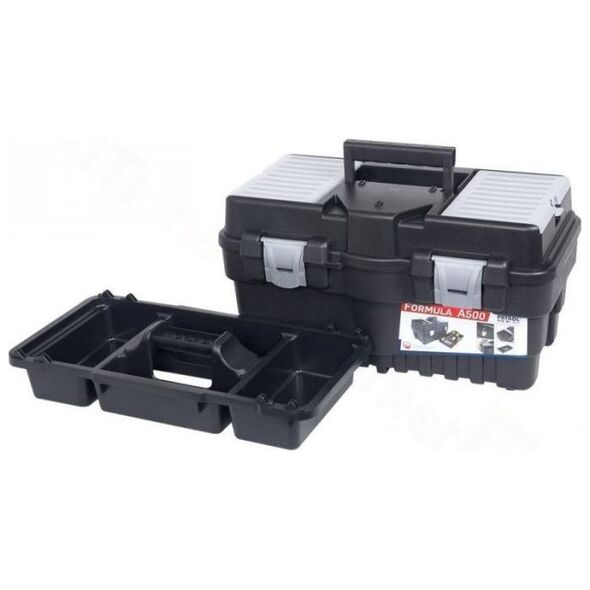Η εργαλειοθήκη Formula A500 της PATROL GROUP είναι μια πρακτική συσκευή που θα βρει τη θέση της σε κάθε σπίτι και εργαστήριο. Ολόκληρο είναι κατασκευασμένο από πλαστικό υψηλής ποιότητας, μια άνετη, ανατομικά διαμορφωμένη λαβή καθιστά εύκολη τη χρήση, ενισχυμένα μεταλλικά κουμπώματα που επιτρέπουν τη μεταφορά χωρίς φόβο ότι θα χυθεί το περιεχόμενο, μια θέση για κλειδαριά κλειδιού προστατεύει τα εργαλεία από κλοπή, δύο διαφανείς οργανώσεις στο Το κάλυμμα διευκολύνει τη διατήρηση της τάξης των μικρών αντικειμένων, ο εσωτερικός, βαθύς δίσκος διευκολύνει τη μεταφορά μικρών εργαλείων, έχει επίσης τρύπες για πρίζες και κατσαβίδια. Χρώμα: Μαύρο Διαστάσεις: εξωτερικό μήκος/πλάτος/ύψος (cm) 46,2 x 25,6 x 24,2 εσωτερικό μήκος/πλάτος/ύψος (cm) 45 x 23 x 17
