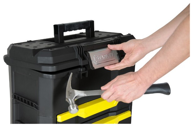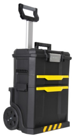 - Ruchomy warsztat narzędziowy z funkcją indywidualnego transportu segmentów składowych zestawu- Każdy z trzech elementów został wyposażony w uchwyt umożliwiający jego samodzielny transport- Otwieranie i zamykanie każdego z organizerów możliwe jedną ręką dzięki nowoczesnemu zatrzaskowi ONE HAND OPERATION- Aluminiowy, teleskopowy uchwyt umożliwiający transport zestawu- Na szczycie, przenośna 19" skrzynka narzędziowa z szufladą- Drugi segment wyposażony w dwie szuflady na drobne narzędzia i akcesoria oraz uchwyt transportowy- Trzeci element z uchylnym organizerem na elektronarzędzia oraz bocznymi kieszeniami na piły i poziomice- Solidny układ jezdny z 7" kołami