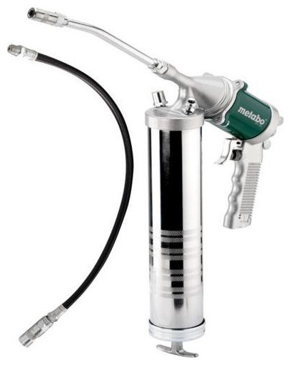 ΤΕΧΝΙΚΑ ΣΤΟΙΧΕΙΑ: Παράμετροι Πίεση λειτουργίας: 2 - 10 bar Κατανάλωση αέρα ανά διαδρομή: 0,4 l Βάρος: 1,55 kg DFP 400 METABO PNEUMATIC LUBRICER Το υλικό τροφοδοτείται συνεχώς μέχρι να απελευθερωθεί ο μοχλός ενεργοποίησης, ακριβής δοσομέτρηση Καμία επίδραση υλικού μετά τη ροή του υλικού από το πιστόλι εργασίες φινιρίσματος Με άκαμπτο και εύκαμπτο σύνδεση που επιτρέπει τη βέλτιστη πρόσβαση και εύκολη λειτουργίαΓια πλήρωση από εξωτερικές δεξαμενές λίπους ή χρήση εμπορικά διαθέσιμων δοχείων (400g) ΠΕΔΙΟ ΠΑΡΑΔΟΣΗΣ: Βύσμα EURO 1/4" βύσμα σύνδεσης ARO/Orion 1/4" βύσμα βύσματος ISO 1 /4" Άκαμπτος σωλήνας για λίπανση 17 cm Εύκαμπτος σωλήνας λίπανσης 46 cm (18")**