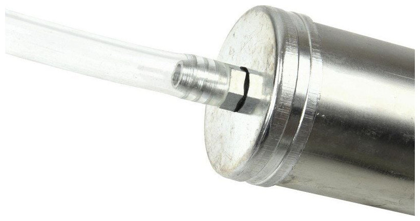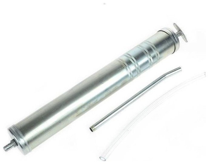 Τεχνικά στοιχεία: χωρητικότητα: 500 ml διάμετρος ράβδου από χάλυβα: 10 mm διάμετρος σώματος: 56 mm Χειροκίνητη αντλία αναρρόφησης λαδιού για 500 ml Χειροκίνητη σύριγγα λαδιού χωρητικότητας 500 ml. Χρησιμοποιείται για την έγχυση λαδιού σε δυσπρόσιτα σημεία, π.χ. κιβώτιο ταχυτήτων, άξονες μετάδοσης κίνησης 12 x 290 mm Λυγισμένος σωλήνας λίπανσης 12 x 240 mm**.
