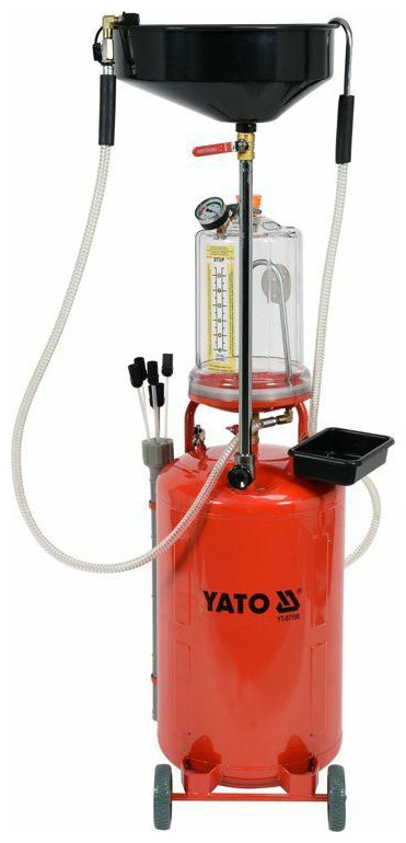 Πνευματικός νεροχύτης και μηχάνημα αναρρόφησης Ένας επαγγελματικός πνευματικός νεροχύτης και βεντούζα με ντεπόζιτο ελέγχου επιτρέπει τη γρήγορη εκκένωση του λαδιού από τους κινητήρες και τα κιβώτια ταχυτήτων αυτοκινήτων. Χρησιμοποιείται για την έκχυση και αναρρόφηση λαδιού και τη λειτουργία υγρών από αυτοκίνητα, μοτοσυκλέτες και γεωργικά μηχανήματα, δεξαμενή ελέγχου χωρητικότητας 10 λίτρων, φαρδιά χοάνη χωρητικότητας 10 λίτρων, ακριβής αναρρόφηση υπολειμματικού λαδιού από γραμμές. και σωλήνες, πίεση λειτουργίας: 8 bar, πίεση αναρρόφησης: 0,7-0,8 MPa Κατανάλωση αέρα Mpa: 90 l/min εξοπλισμένο με 4 τροχούς, συμπεριλαμβανομένων 2 περιστρεφόμενων, που διευκολύνει τη μετακίνηση της συσκευής ύψος: 150 cm θήκη για την αποθήκευση των ανιχνευτών αναρρόφησης που βοηθά στη διατήρηση του χώρου εργασίας τακτοποιημένο και καθαρό σετ 6 αισθητήρων αναρρόφησης - 4 εύκαμπτοι και 2 μέταλλο - κατάλληλο για τα περισσότερα μοντέλα αυτοκινήτων