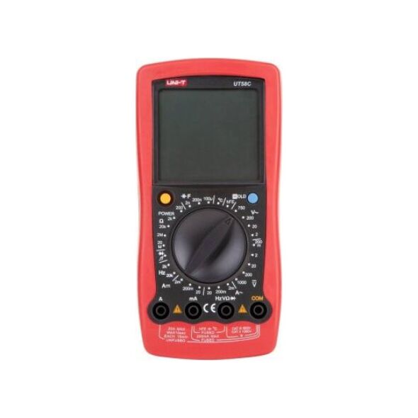 Pomiary - Napięcie DC - 200mV/2V/20V/200V/1000V - Napięcie AC - 2V/20V/200V/1000V - Prąd DC - 2mA/200mA/20A - Prąd AC - 2mA/200mA/20A - Rezystancja - 200/2k/20k/2M/20Mohm - Pojemność - 2nF/200nF/100µF - Temperatura (C) - 40C ~ 1000C - Częstotliwość - 2kHz/20kHz Dodatkowe funkcje - Test diód - Ciągłość obwodu - Badanie tranzystorów - Zapamiętywanie pomiaru - Automatyczne wyłączanie - Wskaźnik niskiego poziomu baterii - Max wartość wyświetlacza 1999 . Charakterystyka - Zasialnie bateria 9V - Wyświetlacz LCD 60 x 54mm - Waga 351g - Wymiary 179 x 88 x 39mm