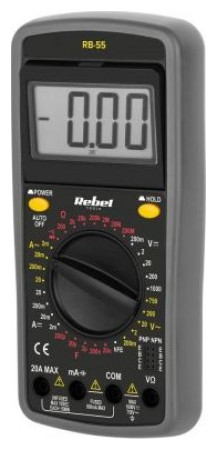Miernik uniwersalny Rebel Tools RB-55 Rebel Tools to przede wszystkim urządzenia, które mają na celu wspomóc majsterkowiczów, którzy drobne prace remontowe chcą wykonywać samodzielnie. Mając na uwadze, że dobre elektronarzędzia to nie wszystko, seria ta została rozszerzona o szereg urządzeń pomiarowych. Wśród nich znalazły się mierniki uniwersalne i cęgowe, których funkcje umożliwiają mierzenie różnych wartości fizycznych, w tym napięcia i natężenia prądu stałego i zmiennego, co umożliwi np. wykrycie usterki w instalacji elektrycznej. Co więcej, w zależności od modelu, multimetry Rebel Tools pozwalają na pomiar temperatury przedmiotu, sprawdzenie ciągłości obwodu czy przetestowanie diod i tranzystorów hFE. Nie potrzebujesz wielofunkcyjnego urządzenia? Wybierz jeden z dwóch modeli wskaźników napięcia, które umożliwiają pomiar napięcia AC/DC. Remonty często wymagają ingerencji w tynk. Dlatego w serii Rebel Tools znalazł się także detektor 3w1 do wykrywania metali, napięcia oraz drewna. Dzięki temu urządzeniu dowiesz się, w którym miejscu możesz bezpiecznie wywiercić otwór w ścianie by zamontować obraz czy półkę, nie martwiąc się o uszkodzenie instalacji elektrycznej. To jeszcze nie koniec urządzeń pomiarowych z serii Rebel Tools! Do dyspozycji masz także tester linii telefonicznych, informujący m.in. o zwarciach i przerwach przewodów czy o ich zamienionej kolejności. Potrzebujesz szerszej funkcjonalności? Wybierz szukasz par przewodów, który oprócz testowania kabli telefonicznych, umożliwia także testowanie kabli sieciowych, przeprowadzenie testu ciągłości oraz lokalizowanie poszukiwanych przewodów. Dzięki Rebel Tools możesz także zapomnieć o klasycznej miarce – w serii znalazł się bowiem laserowy miernik dystansu z zasięgiem 18 metrów. Na uwagę zasługują dodatkowe funkcje tego dalmierza, m.in. poziomica czy pomiar pola powierzchni lub objętości. Serię urządzeń pomiarowych Rebel Tools zamykają testery baterii, które umożliwią sprawdzenie beterii: 9 V, AAA, AA, C, D oraz guzikowych. ZAKRESY POMIAROWE Napięcie DC: 200 mV, 2 V, 20 V, 200 V, 1000 V Napięcie AC: 200mV, 2 V, 20 V, 200 V, 750 V Natężenie prądu DC: 2 mA, 20 mA, 200 mA, 20 A Natężenie prądu AC: 2 mA, 20 mA, 200 mA, 20 A Rezystancja: 200 Ohm, 2 kOhm, 20 kOhm, 200 kOhm, 2 MOhm, 20 MOhm, 200 MOhm Pojemność: 20 nF, 200 nF, 2 µF, 20 µF, 200 µF Test diod Test tranzystorów hFE Sprawdzanie ciągłości obwodu CECHY OGÓLNE Ręczna zmiana zakresów pomiarowych Rozkładana podstawka Zamrożenie ostatniego wskazania Wskaźnik niskiego poziomu baterii Polaryzacja: automatyczna Częstotliwość próbkowania: 2 razy na sekundę Maksymalny odczyt: 1999 Rozmiar wyświetlacza: 60 x 31 mm Temperatura pracy: 0°C ~ 40° przy wilgotności